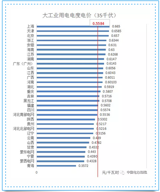 2、35千伏電壓等級(jí)下,全國(guó)平均電價(jià)約為0.5584元/千瓦時(shí),其中,上海最高為0.665元/千瓦時(shí),青海最低為0.3572元/千瓦時(shí)。