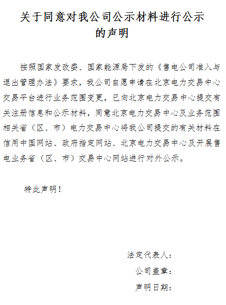 北京電力交易中心公示1家售電公司注冊信息變更有關(guān)情況
