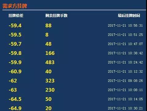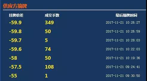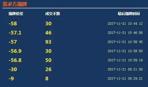 隨著時間推移,盤上需求方掛出2手5.99分,瞬間被供應(yīng)方摘得。后來需求方慢慢領(lǐng)悟到供應(yīng)方的策略,于是供應(yīng)方在盤上的價格紛紛跟至6分左右這個區(qū)域。