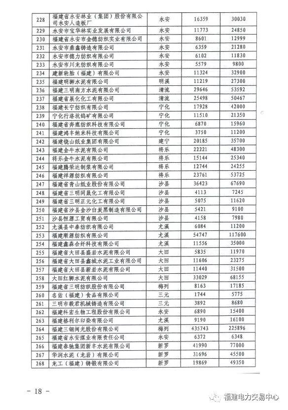 福建2018年老用戶年度長(zhǎng)協(xié)規(guī)模確定:交易電量約331億千瓦時(shí)(附名單)