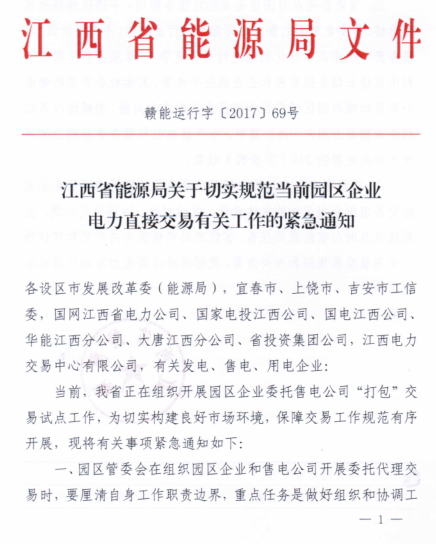 江西能源局關(guān)于園區(qū)企業(yè)電力直接交易的緊急通知