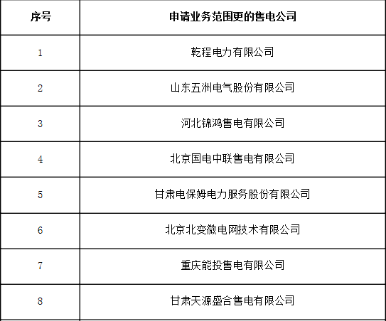 受理了14家售電公司的業(yè)務(wù)范圍更申請,現(xiàn)將企業(yè)名單及基本情況予以公示。