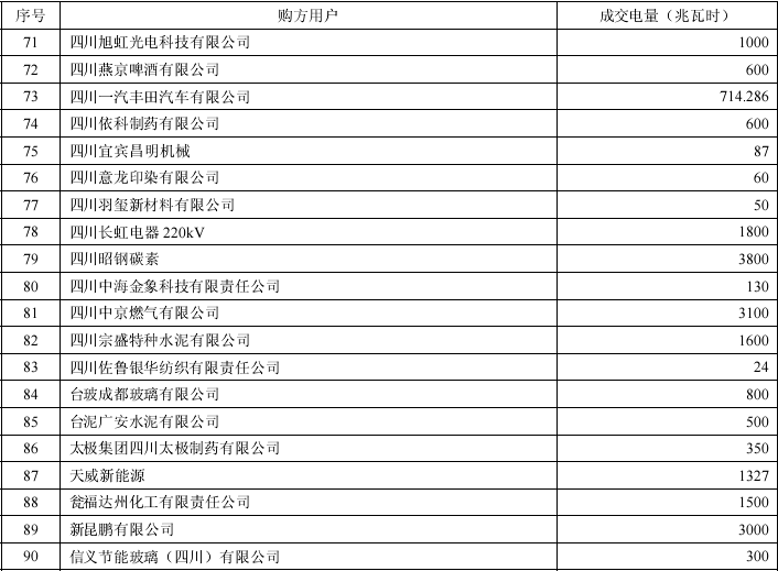 四川2017年10月份月度直購(gòu)電及富余電量交易結(jié)果已公布