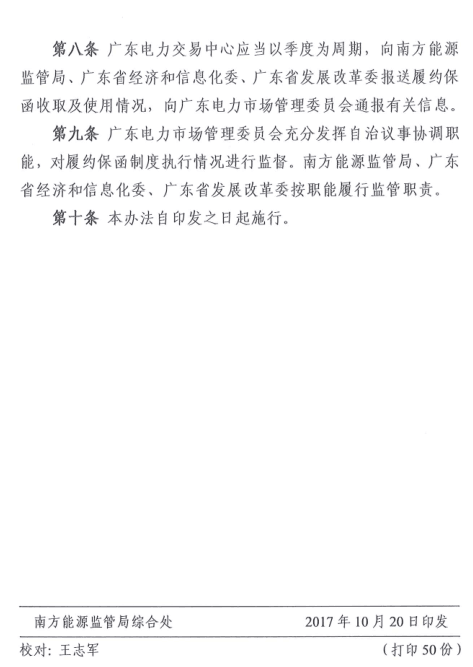 10月20日,國家能源局南方監(jiān)管局、廣東省經(jīng)濟和信息委員會、廣東省發(fā)展和改革委員會出臺了《廣東電力市場售電公司履約保函管理辦法(試行)》,售電公司需要注意手里簽約的客戶有多少,計算一下要繳納的履約保函。