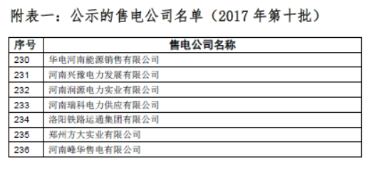 河南對(duì)17家售電公司提交的市場(chǎng)注冊(cè)及信息變更材料進(jìn)行了受理