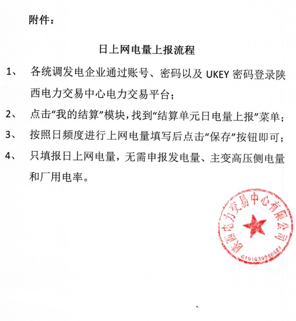 陜西電廠12月1日起每天10:00前上報(bào)上網(wǎng)電量(附日上網(wǎng)電量上報(bào)流程)