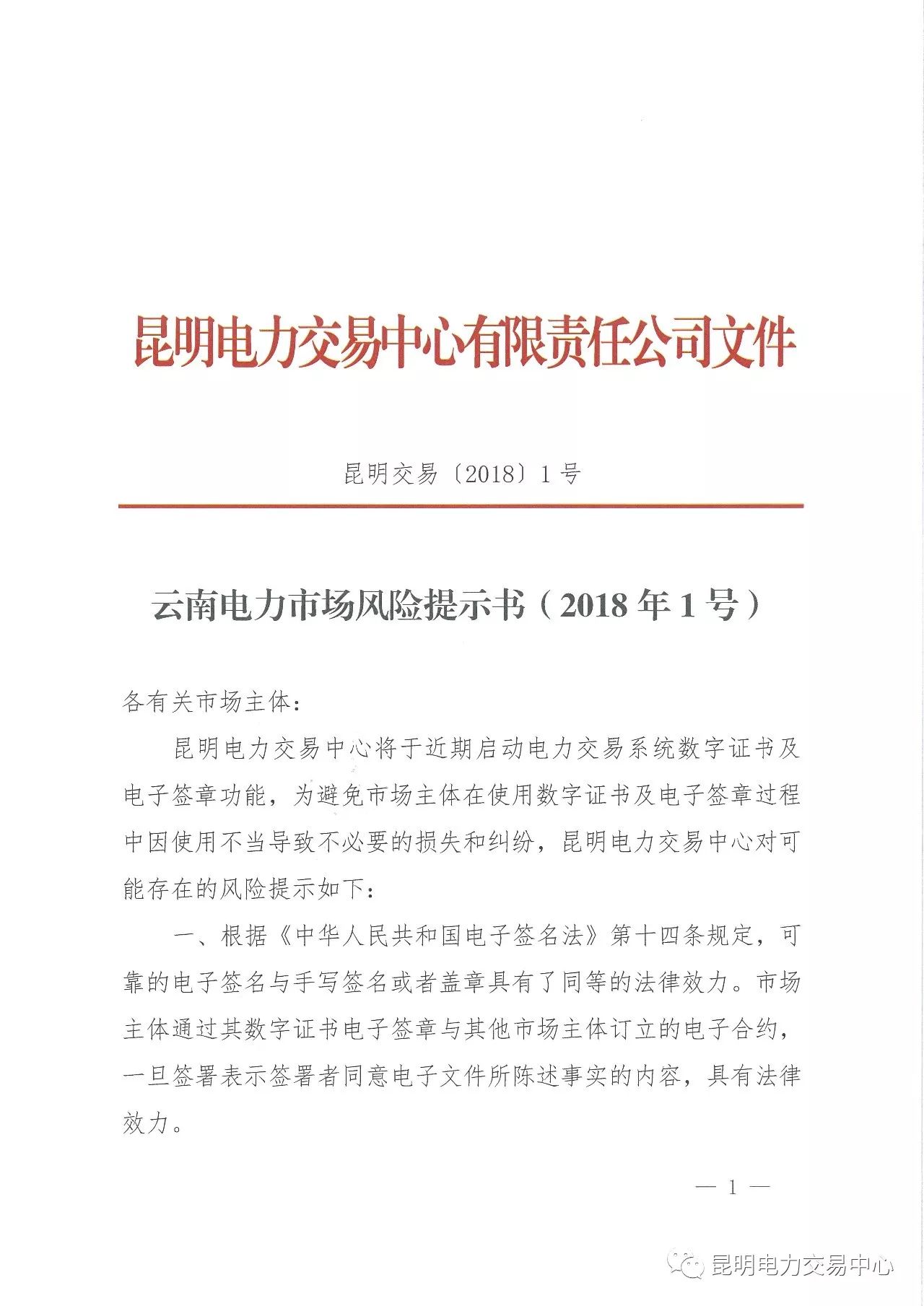 云南發(fā)布電力市場風(fēng)險提示書(2018年1號)