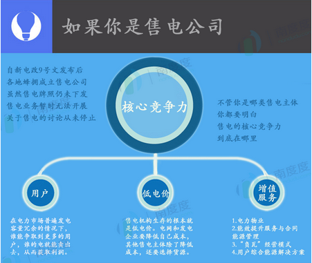 電改新增五類(lèi)發(fā)電主體,包括:高新產(chǎn)業(yè)園區(qū)或經(jīng)濟(jì)技術(shù)開(kāi)發(fā)區(qū);社會(huì)資本;分布式電源或微網(wǎng)系統(tǒng);供水、供氣、供熱等公共服務(wù)行業(yè)和節(jié)能服務(wù)公司;發(fā)電企業(yè),再加上電網(wǎng)公司,電改后,售電市場(chǎng)將出現(xiàn)六類(lèi)主體競(jìng)爭(zhēng)的場(chǎng)面。