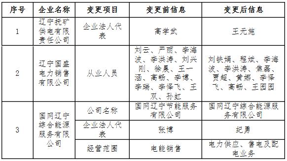 遼寧公示3家售電公司的注冊信息變更申請