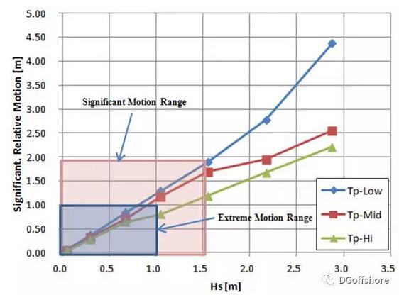 在全年海況作用下,考慮登船系統(tǒng)運(yùn)動(dòng)補(bǔ)償,當(dāng)以相對(duì)運(yùn)動(dòng)有義值作為校核標(biāo)準(zhǔn)時(shí),對(duì)應(yīng)最大作業(yè)有義波高為1.6m; 當(dāng)以相對(duì)運(yùn)動(dòng)最大值作為校核標(biāo)準(zhǔn)時(shí),對(duì)應(yīng)最大作業(yè)有義波高為1.0m。