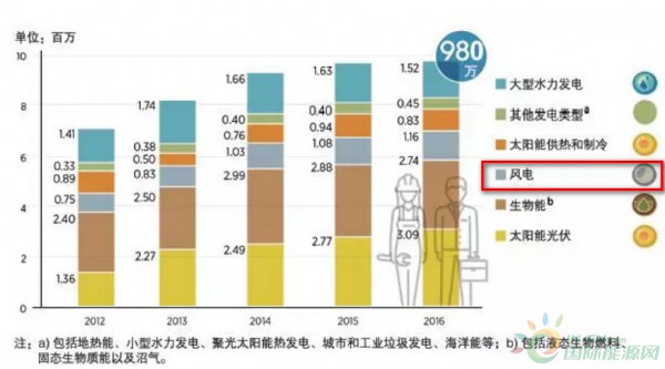 2016年可再生能源技術(shù)創(chuàng)造就業(yè)崗位