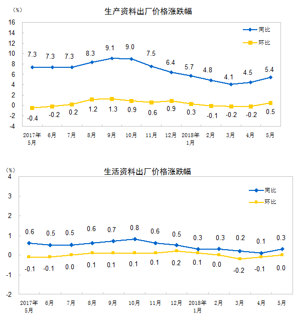 2018年5月工業(yè)生產(chǎn)者價格主要數(shù)據(jù)