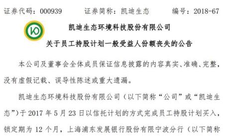 凱迪生態(tài)6月14日一早突發(fā)《關(guān)于員工持股計劃一般受益人份額喪失的公告》公告,這則公告簡單翻譯一下,就是員工持股計劃爆倉了!