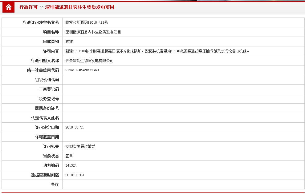 項目核準丨安徽深能泗縣農林生物質發(fā)電項目核準