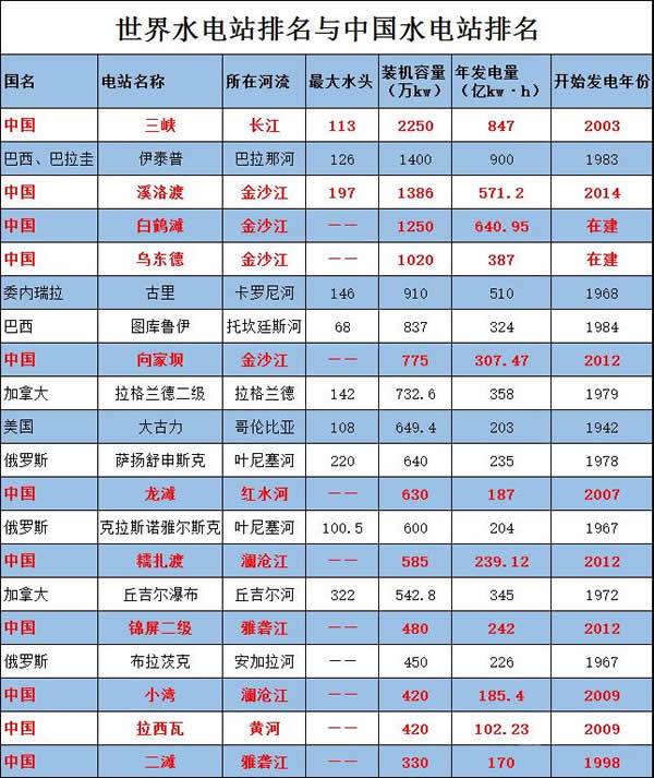 在之后的100余年的時(shí)間里,水電逐漸成為僅次于火力發(fā)電的第二大電源,在法國(guó)、瑞士等國(guó)家的水能資源利用率已經(jīng)達(dá)到97%。但從中國(guó)瞄上水電并有能力自主建設(shè)水電之后,一項(xiàng)項(xiàng)世界紀(jì)錄便信手拈來,時(shí)至今日,中國(guó)水電裝機(jī)容量和發(fā)電量分別達(dá)到33211萬千瓦和10518.40億千瓦時(shí),穩(wěn)居世界第一,在世界排名前20的水電站中,“中國(guó)造”獨(dú)占11,繼橋梁之后再次屠版。