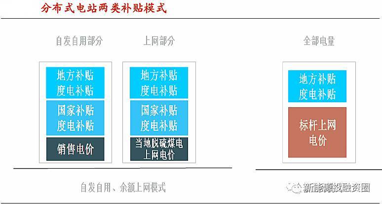分布式電站按照補貼模式可以分為“自發(fā)自用、余電上網(wǎng)”和“全額上網(wǎng)”模式,已選擇“自發(fā)自用、余電上網(wǎng)”模式的分布式電站可以變更為“全額上網(wǎng)”模式。“自發(fā)自用、余電上網(wǎng)”模式下,用戶按照全部發(fā)電量獲得0.42元/kWh國家補貼,自用電量以外的上網(wǎng)電量按照當?shù)孛摿蚧痣娚暇W(wǎng)電價出售給電網(wǎng);“全額上網(wǎng)”模式下,光伏發(fā)電執(zhí)行全國統(tǒng)一標桿上網(wǎng)電價。