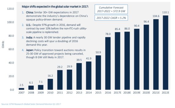 GTM:2017年全球新增太陽(yáng)能裝機(jī)量超85GW