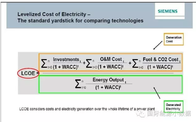 計算某種電源全壽命期內(nèi)發(fā)電成本,可以用電力供應(yīng)平準(zhǔn)化成本(levelized cost of electricity,LCOE)的概念,即全壽命期內(nèi)的總成本(包括初始投資、運行維修、燃料、碳價)除以壽命期內(nèi)的發(fā)電總量:但是即便是