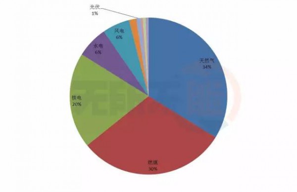 圖:2016年美國(guó)不同技術(shù)發(fā)電量占比