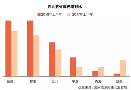 棄光率:西北地區(qū)情況好轉(zhuǎn)明顯。在有關(guān)部門對(duì)棄光地區(qū)裝機(jī)規(guī)模的嚴(yán)格控制,以及電網(wǎng)公司的積極推動(dòng)之下,與2016年相比,中國三北地區(qū)的棄光情況已有所改善。數(shù)據(jù)顯示,西北五省的棄光率同比下降4.2個(gè)百分點(diǎn),其中新疆、甘肅、寧夏等地的情況都有明顯好轉(zhuǎn)。值得注意的是,盡管國家電網(wǎng)公司對(duì)各個(gè)省公司已經(jīng)下達(dá)了硬性的新能源消納指標(biāo),并將其納入了績效考核,但除了國家電網(wǎng)之外,目前中國還存在著不少當(dāng)?shù)氐碾娋W(wǎng)企業(yè),由于這些企業(yè)由地方政府管理,因此并不受相關(guān)的績效考核約束。以陜西省為例,該省可再生能源消納比例位居全國倒數(shù)第一,盡管西北電網(wǎng)架結(jié)構(gòu)相對(duì)較好,但由于該省下屬的陜西地電對(duì)地方煤電有保護(hù)傾向,結(jié)果直接導(dǎo)致陜西省的棄光率從2016年的1.7%直接上升到2017年上半年的9.7%。