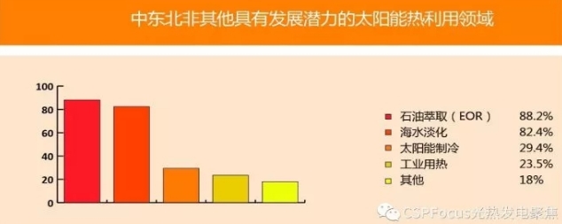除用于發(fā)電以外,光熱高溫利用在MENA地區(qū)應用前景也被普遍看好。其中,該地區(qū)因缺水、石油資源豐富等特殊條件對于海水淡化、稠油開采的需求巨大,給予太陽能中高溫應用無限的發(fā)展空間。