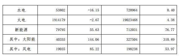 (一)發(fā)電量情況。9月份當(dāng)月,全省發(fā)電量204.78億千瓦時(shí),同比減少1.65%。其中水電5.38億千瓦時(shí),同比減少16.15%;火電191.42億千瓦時(shí),同比減少2.67%;新能源7.98億千瓦時(shí),同比增長55.63%。