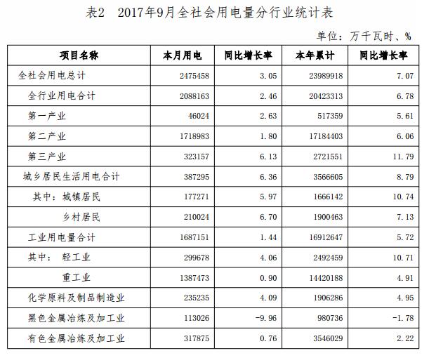 (一)全社會(huì)用電量情況。2017年9月,全省全社會(huì)用電量247.55億千瓦時(shí),同比增長3.05%;累計(jì)用電量2398.99億千瓦時(shí),同比增長7.07%。