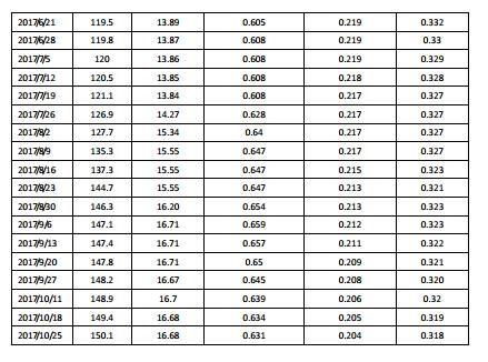 從年初到10月底,國(guó)內(nèi)多晶硅均價(jià)13.13萬(wàn)元/噸,相比去年同期小幅上漲3.6%。今年光伏需求持續(xù)超預(yù)期,截至9月底,2017年國(guó)內(nèi)光伏新增裝機(jī)已達(dá)42GW,其中分布式占比近4成。在終端需求的支撐下,多晶硅及多晶硅片價(jià)格自4月份低點(diǎn)以來(lái)已經(jīng)分別反彈約38%和17%。預(yù)期:需求方面,進(jìn)入第四季度以來(lái),分布式補(bǔ)貼即將調(diào)整等政策繼續(xù)刺激終端需求,單晶產(chǎn)能的加速擴(kuò)張和多晶硅訂單提早一個(gè)月簽訂均可直接反映下游的旺盛需求。供應(yīng)方面,11月份新特能源、宜昌南玻、韓國(guó)OCI均有檢修計(jì)劃,影響供應(yīng)約3000噸左右,而新建企業(yè)釋放量至多300噸,供應(yīng)短缺的現(xiàn)狀仍將持續(xù),因此預(yù)計(jì)未來(lái)一個(gè)月之內(nèi),多晶硅價(jià)格仍可獲支撐。