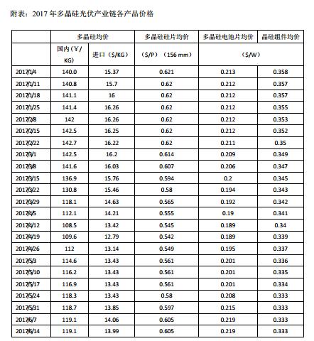 最新統(tǒng)計(jì)顯示2017年前三季度,我國(guó)新增光伏裝機(jī)達(dá)到42GW左右,同比增長(zhǎng)60%,已超過(guò)去年全年裝機(jī)總規(guī)模(34.5GW),其中分布式裝機(jī)15GW,同比增長(zhǎng)了300%以上,光伏裝機(jī)持續(xù)超預(yù)期的原因在于領(lǐng)跑者計(jì)劃延期并網(wǎng)以及分布式光伏的爆發(fā)。目前我國(guó)光伏產(chǎn)業(yè)發(fā)展還是處于政策和補(bǔ)貼驅(qū)動(dòng),但平價(jià)上網(wǎng)才是維持其持續(xù)發(fā)展的生命力,而中國(guó)多晶硅和光伏企業(yè)也在為實(shí)現(xiàn)平價(jià)上網(wǎng)的階段性目標(biāo)而進(jìn)行技改降本、創(chuàng)新增效。