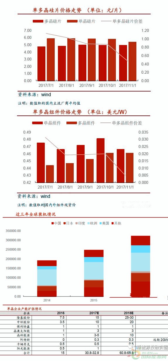 歐美四季度是淡季,是觸發(fā)單晶硅片價格下調主要原因:此次調價的最主要原因是歐美由于圣誕節(jié),裝機需求開始下降,而從2017 年Q4 到2018 年Q1,全球市場需求來自新興市場,如印度、拉美等國家,這些國家對組件價格的敏感度高,更偏好目前價格依舊相對較低的多晶組件。