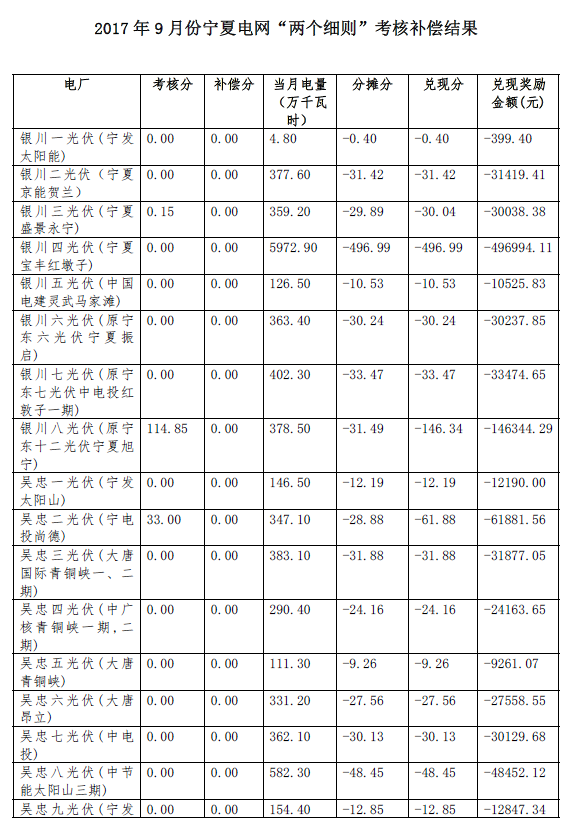 原標(biāo)題:2017年9月寧夏電網(wǎng)“兩個(gè)細(xì)則”考核補(bǔ)償情況(光伏)