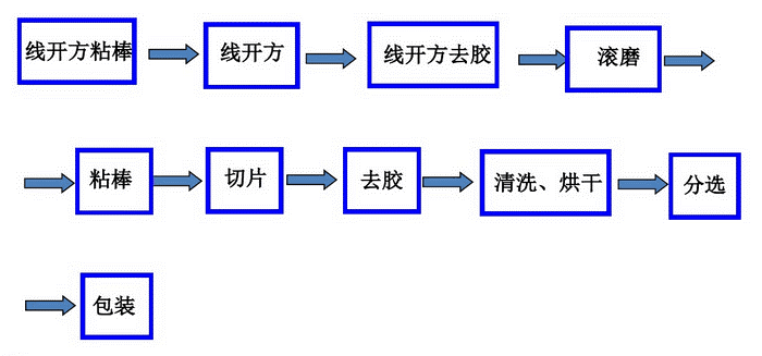 2、多晶開方是把粘在操作臺上的硅錠制成符合檢測要求的硅塊,開方包括單晶棒及多晶錠的粘接、加工、清洗、稱重、檢測等。