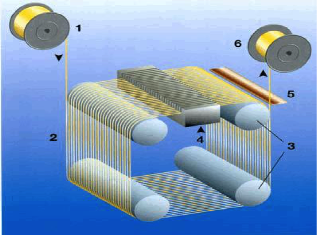 切割原理:高速運動的鍍銅鋼線和切削液(具有切削能力的物質如SiC)對工件(硅塊)進行持續(xù)下壓,硅塊被切開