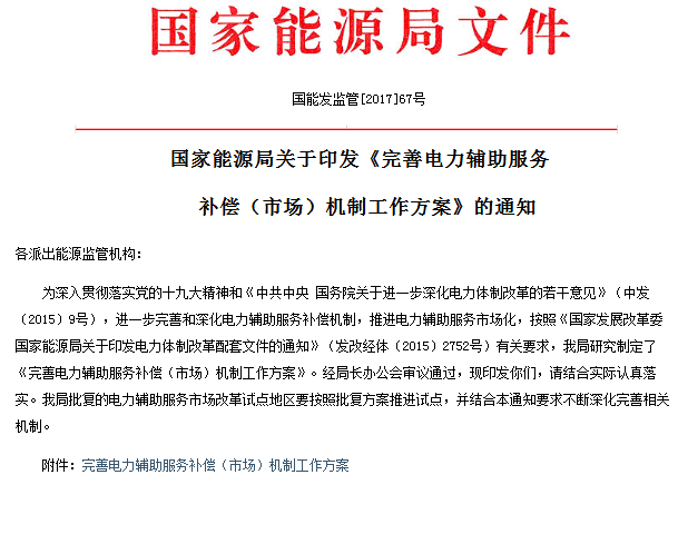 完善電力輔助服務(wù)補償(市場)機制工作方案