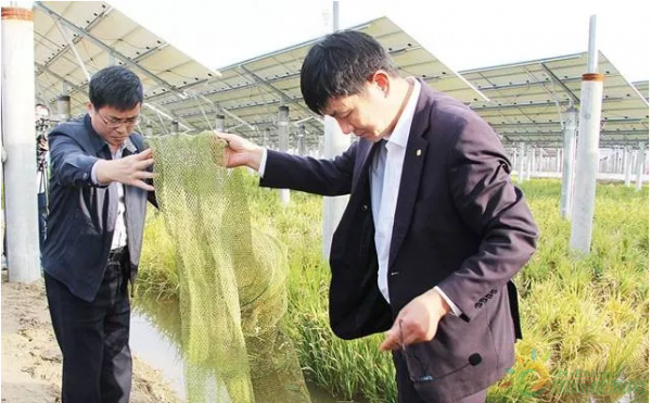 去年,試種了水稻,畝產(chǎn)達(dá)到591公斤。今年,又在這20畝水稻田里開始了魚和蟹的混養(yǎng)試驗(yàn),現(xiàn)在魚、蟹畝產(chǎn)分別達(dá)到50公斤和25公斤,水稻產(chǎn)量在400公斤左右。還有這20畝光伏板的發(fā)電量,全年可達(dá)92萬度電。如今,一水兩用、一光三照、一地多收的綠色新發(fā)展模式,有力帶動(dòng)了當(dāng)?shù)剞r(nóng)戶增收致富。”
