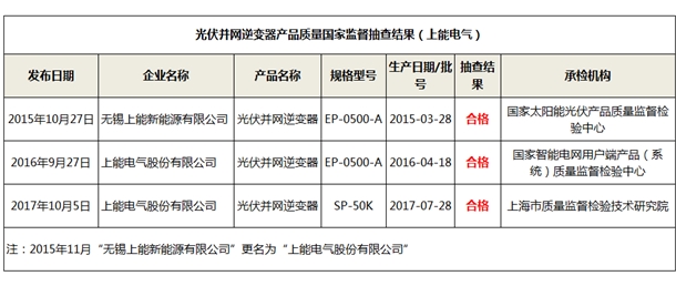 上能電氣連續(xù)3年質(zhì)檢總局抽檢合格 刷新品質(zhì)新高度