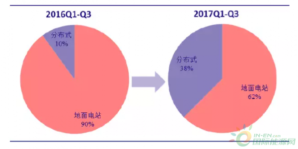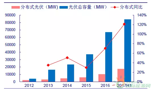 據(jù)國家能源局發(fā)布統(tǒng)計數(shù)據(jù)顯示,2017年1-11月,我國光伏發(fā)電量達1069億千瓦時,同比增長72%,光伏發(fā)電量占全部發(fā)電量的比重同比增加0.7個百分點,光伏年發(fā)電量首超1000億千瓦時。其中,集中式光伏發(fā)電量達932億千瓦時,分布式光伏發(fā)電量達137億千瓦時。截至2017年11月底,我國光伏累計裝機容量達12579萬千瓦,同比增長67%,累計裝機容量占總電力裝機的比重達7.5%,同比增加2.7個百分點。隨著2018年的到來以及目前電價形式的明確,分布光伏能否延續(xù)2017年的火爆,真正成為光伏產(chǎn)業(yè)的新支點?