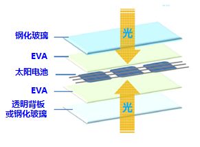 2013年以來(lái),隨著國(guó)內(nèi)外前期投資的光伏電站的陸續(xù)并網(wǎng)發(fā)電并運(yùn)行一段時(shí)間后,國(guó)內(nèi)外電站的質(zhì)量問(wèn)題時(shí)有出現(xiàn)。由于某些有機(jī)材料的壽命較短、耐候性較差,光伏組件中的EVA膠膜和背板的質(zhì)量開(kāi)始被高度關(guān)注,水汽穿透背板導(dǎo)致劣質(zhì)EVA樹(shù)脂快速降解有密切的關(guān)系,EVA樹(shù)脂遇水即開(kāi)始緩慢分解,其分解產(chǎn)物含醋酸,醋酸腐蝕光伏電池上的銀柵線(xiàn)、匯流帶等,使組件的發(fā)電效率逐年下降。為了規(guī)避這一問(wèn)題,雙玻組件為高品質(zhì)光伏電站的較為理想的解決方案之一,但雙玻組件的電池片間漏光導(dǎo)致組件功率損失較大,組件正面功率相比常規(guī)背板偏低;同時(shí),無(wú)框雙玻組件對(duì)封裝材料和封裝工藝要求較高。
