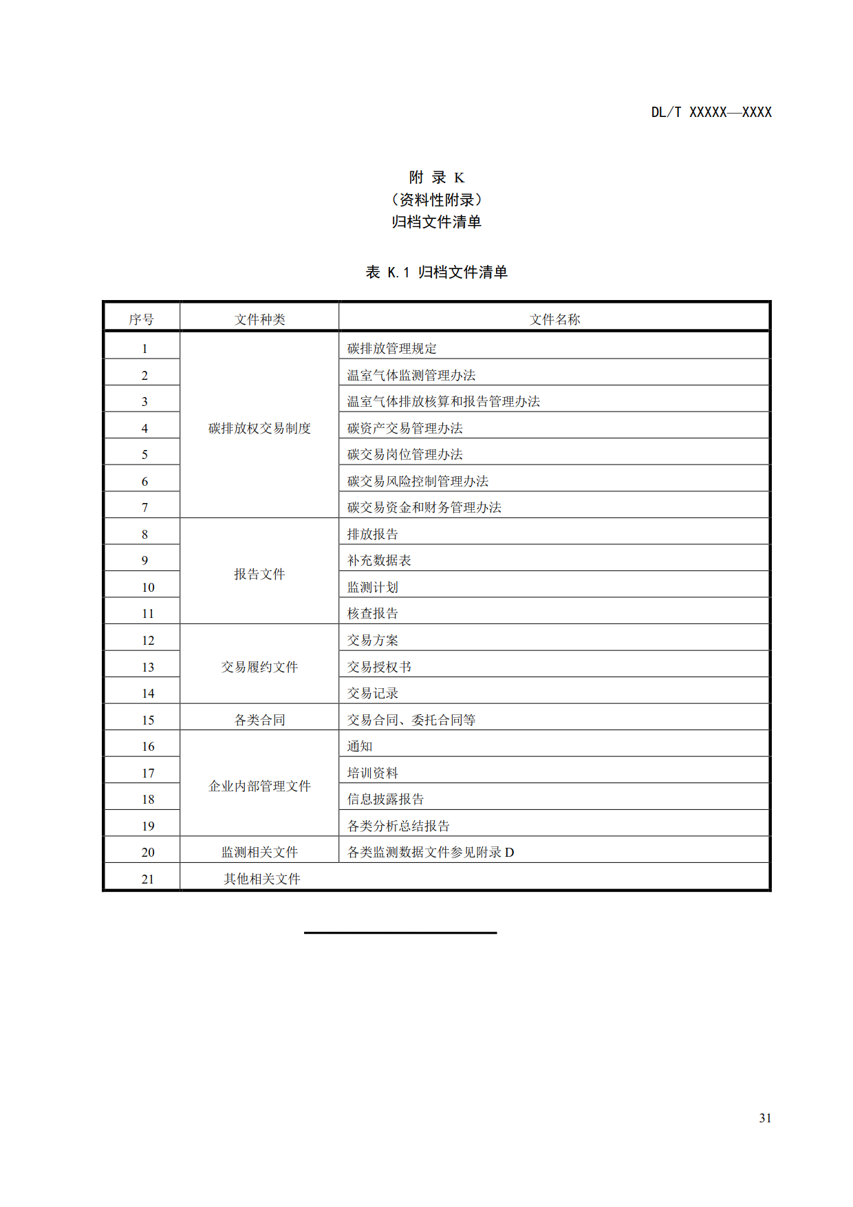 6.10.1 發(fā)電企業(yè)應妥善保管碳交易相關文件,建立歸檔文件清單和文件庫,歸檔文件清單參見附錄K,歸檔文件應至少保存10年。