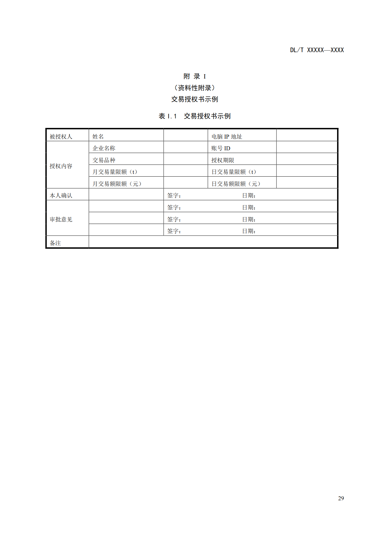 6.5.2.4.3 發(fā)電企業(yè)應指定交易員并書面授權(quán),交易員在授權(quán)范圍內(nèi)執(zhí)行交易,交易授權(quán)書示例參見附錄I。