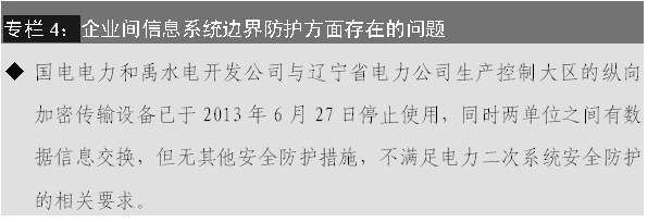 (4)部分企業(yè)未按要求開展電力二次系統(tǒng)安全防護(hù)評(píng)估工作。