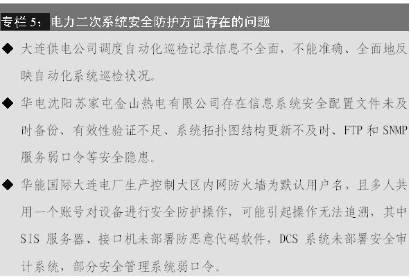 5. 部分企業(yè)電力二次系統(tǒng)安全防護(hù)設(shè)備運(yùn)行維護(hù)不及時(shí)、安全配置不完整,主要體現(xiàn)在: