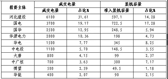 從成交結(jié)果情況看,河北建投集團(tuán)所轄風(fēng)電場(chǎng)成交電量最大,成交占比達(dá)31.61%。成交占比前三名的發(fā)電主體分別是河北建投、國(guó)電和國(guó)華所屬風(fēng)電企業(yè)。