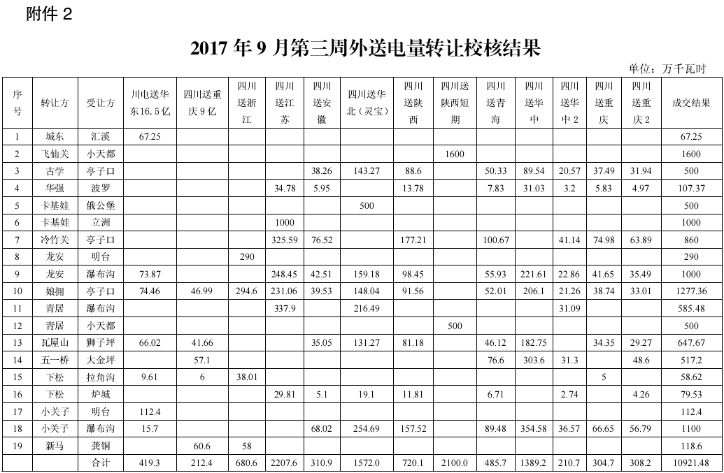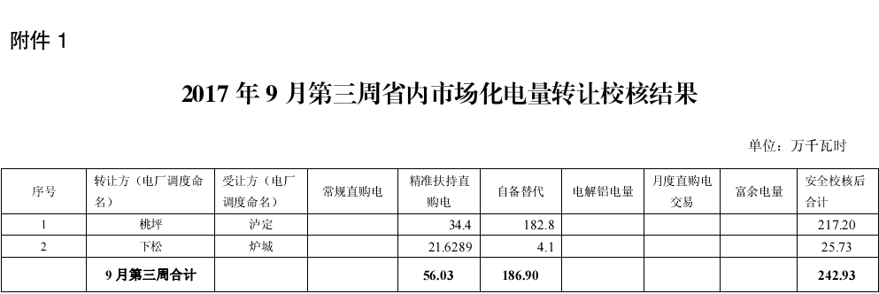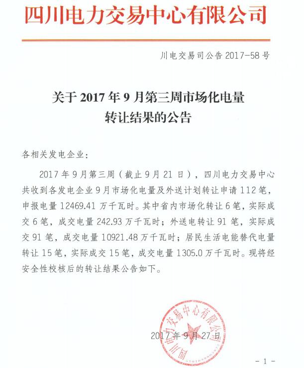2017年9月第三周四川市場(chǎng)化電量轉(zhuǎn)讓成交電量12469.41萬(wàn)千瓦時(shí)