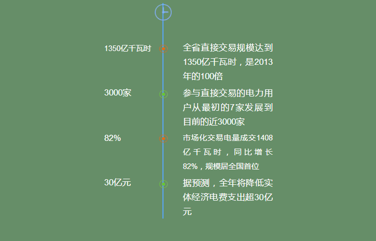 首次省內(nèi)集中競(jìng)價(jià)交易成交規(guī)模50億千瓦時(shí);建立直接交易月度市場(chǎng)定期開(kāi)市機(jī)制,組織5次月度集中競(jìng)價(jià)交易,成交電量228億千瓦時(shí),降低用戶購(gòu)電成本4.813億元;2017年直接交易規(guī)模達(dá)到1350億千瓦時(shí),是2013年直接交易量的100倍,將為用戶節(jié)約購(gòu)電成本超30億元……這是黨的十八大以來(lái)江蘇電力交易取得的成果。