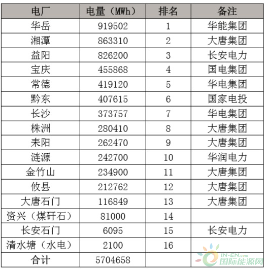 表 3 四季度發(fā)電企業(yè)成交電量排名