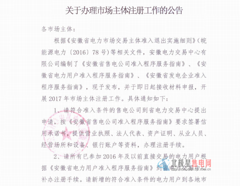 安徽電力發(fā)布關(guān)于辦理市場(chǎng)主體注冊(cè)工作的公告,一起來(lái)看公告全文: