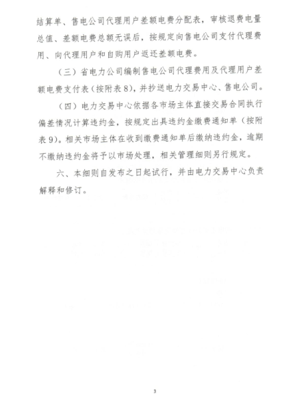 結(jié)算結(jié)果確認(rèn)后3個(gè)工作日內(nèi),電力交易中心完成發(fā)電企業(yè)其他交易成分結(jié)算并向省電力公司提供結(jié)算單和購電主體直接交易明細(xì)表。