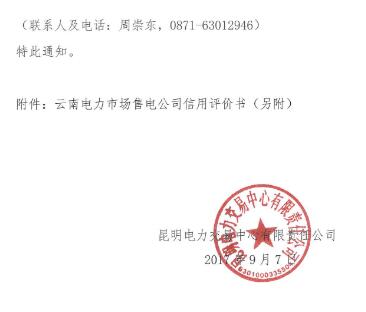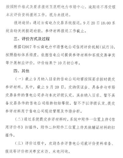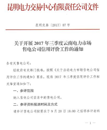 云南開展2017年三季度電力市場(chǎng)售電公司信用評(píng)價(jià)工作