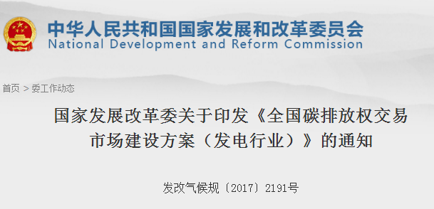 國家發(fā)改委印發(fā)《全國碳排放權(quán)交易市場(chǎng)建設(shè)方案(發(fā)電行業(yè))》